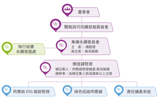 環旭電子的永續供應鏈管理計畫,由董事會授權董事長領導之戰略與可持續發展委員會執行與決策,以實現董事會監督,確保公司的政策和實施一致,並持續改進以達成長期目標,此外 茄子影院,集團永續委員會亦每半年追蹤並檢視供應鏈永續發展指標績效。